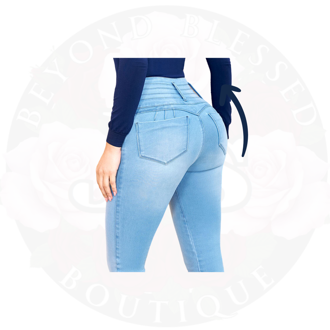 Jean Betania jeans provide a flattering and comfortable fit with their butt-lifting design and soft-touch peach skin fabric. The high waistband, anatomical waistband, and bow detail enhance your curves while shaping your legs and hips. Complete the look with back pockets and belt loops.