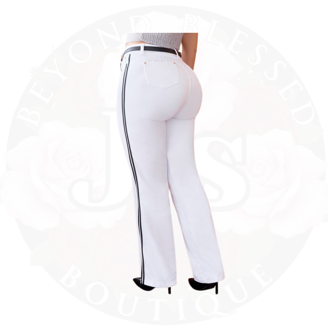 Expertly crafted with peach skin fabric, Jean Brixida lifts and shapes your butt for a flattering silhouette. The anatomical waistband and wide leg provide a comfortable and stylish fit. Complete with back pockets and a belt for added convenience and versatility.