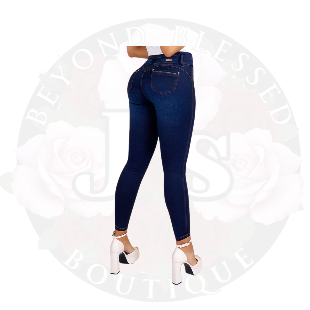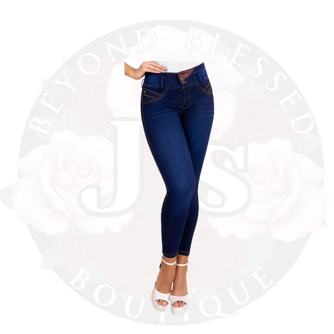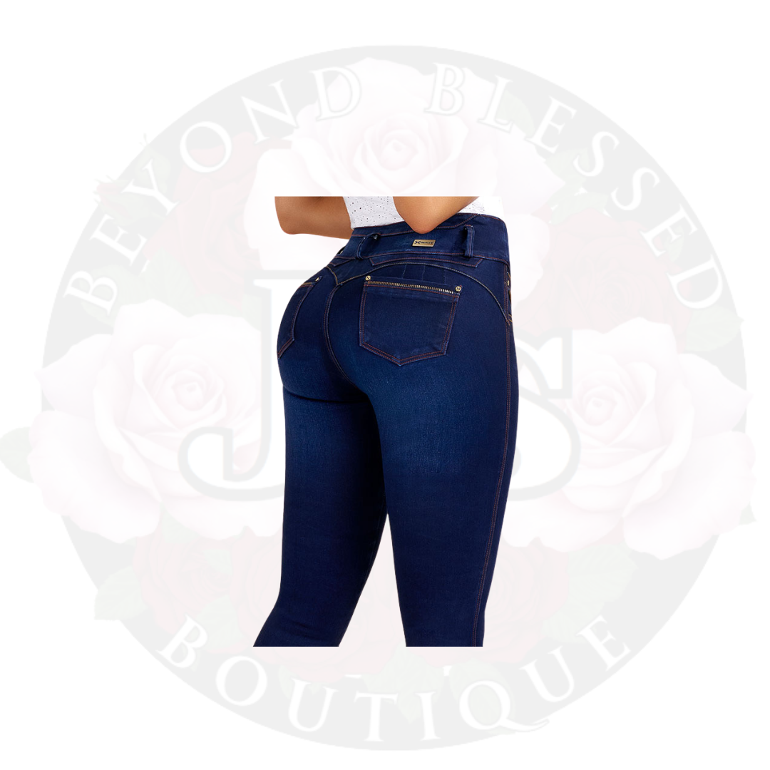 Enhance your curves with Jean Dianne's butt-lifting and high waist design. The zipper in front adds a touch of style while the pockets provide functionality. Achieve a sleek and trendy look in the dark wash.