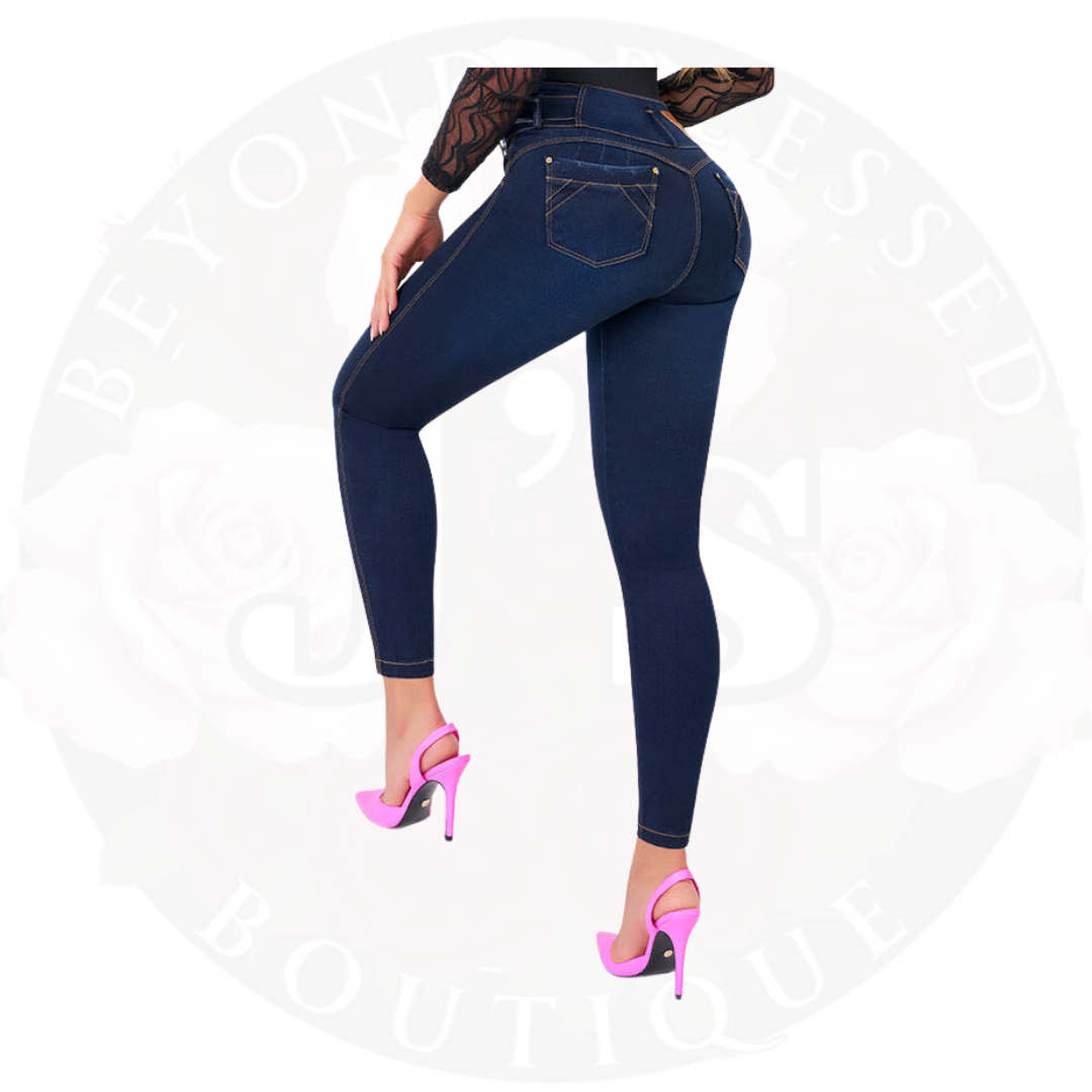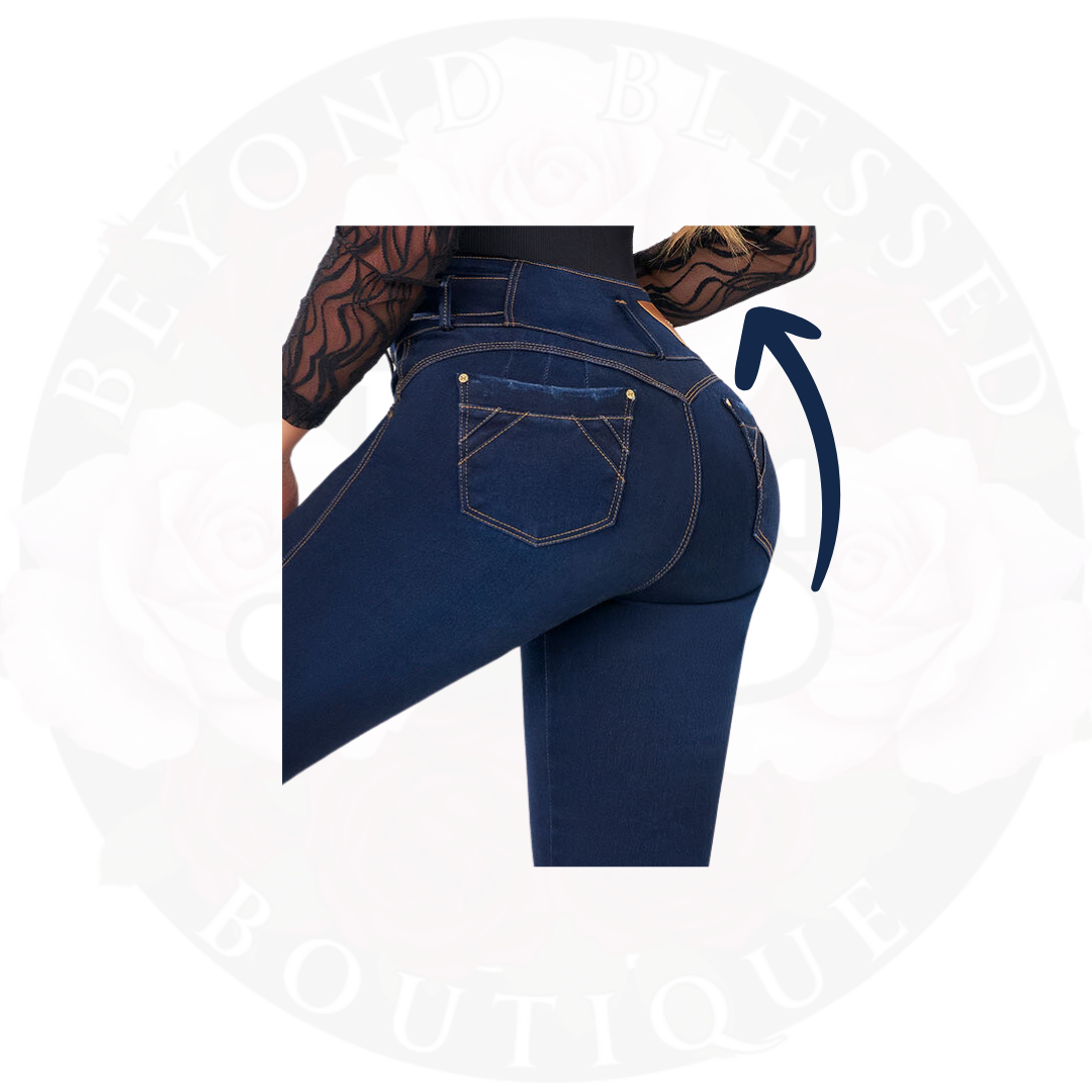 Enhance your figure with Jean Donia's butt-lifting jeans. Made of soft peach skin fabric, these jeans shape the legs and hips while the anatomical waistband flatters your curves. Enjoy a comfortable fit with a touch of style.