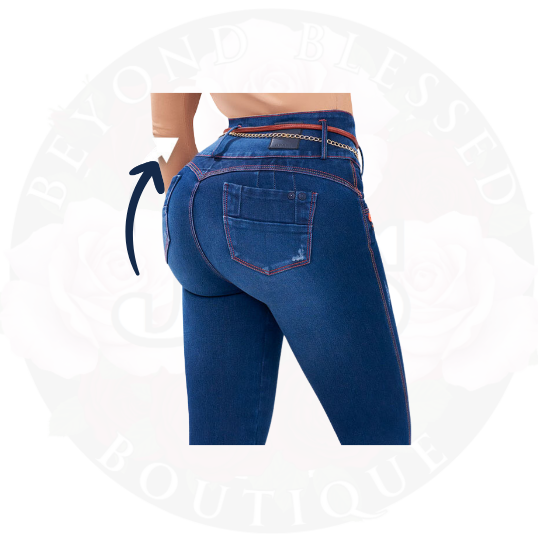 The Jean Jayma jeans are expertly crafted with a soft-touch peach skin fabric for ultimate comfort. Featuring an anatomical waistband and back pockets, these butt-lifting jeans are designed to shape and enhance your legs and hips. Experience the perfect fit and flattering silhouette with Jean Jayma.