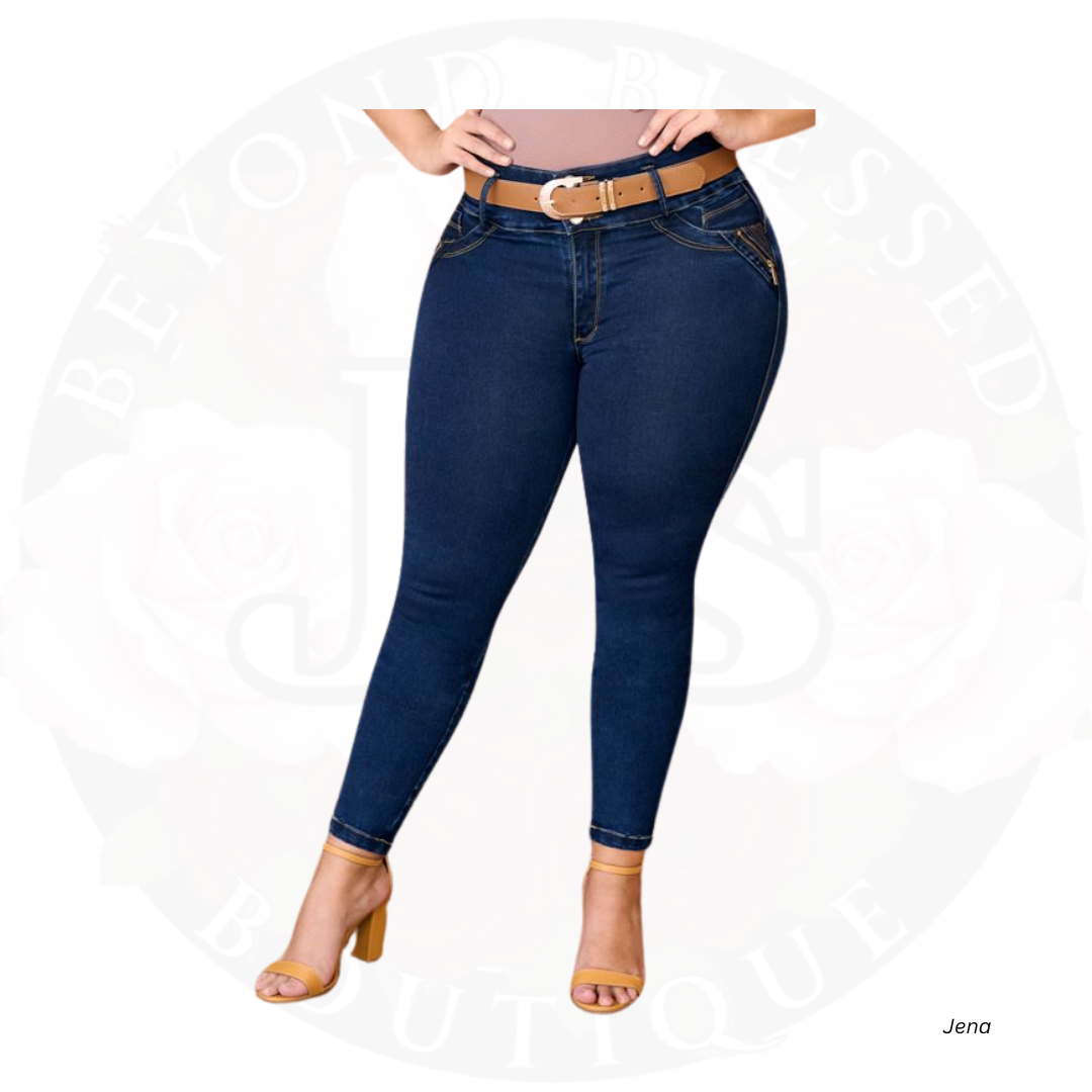 Jean Jena is the ultimate in comfortable and stylish denim. Our butt-lifting jeans are crafted from soft-touch peach skin fabric and feature a three-button high waistband and anatomical waistband for a perfect fit. With back pockets and a decorative zipper detail, these jeans not only shape your legs and hips, but add a touch of flair to any outfit. Plus, it comes with a belt for a complete look. Elevate your denim game with Jean Jena.