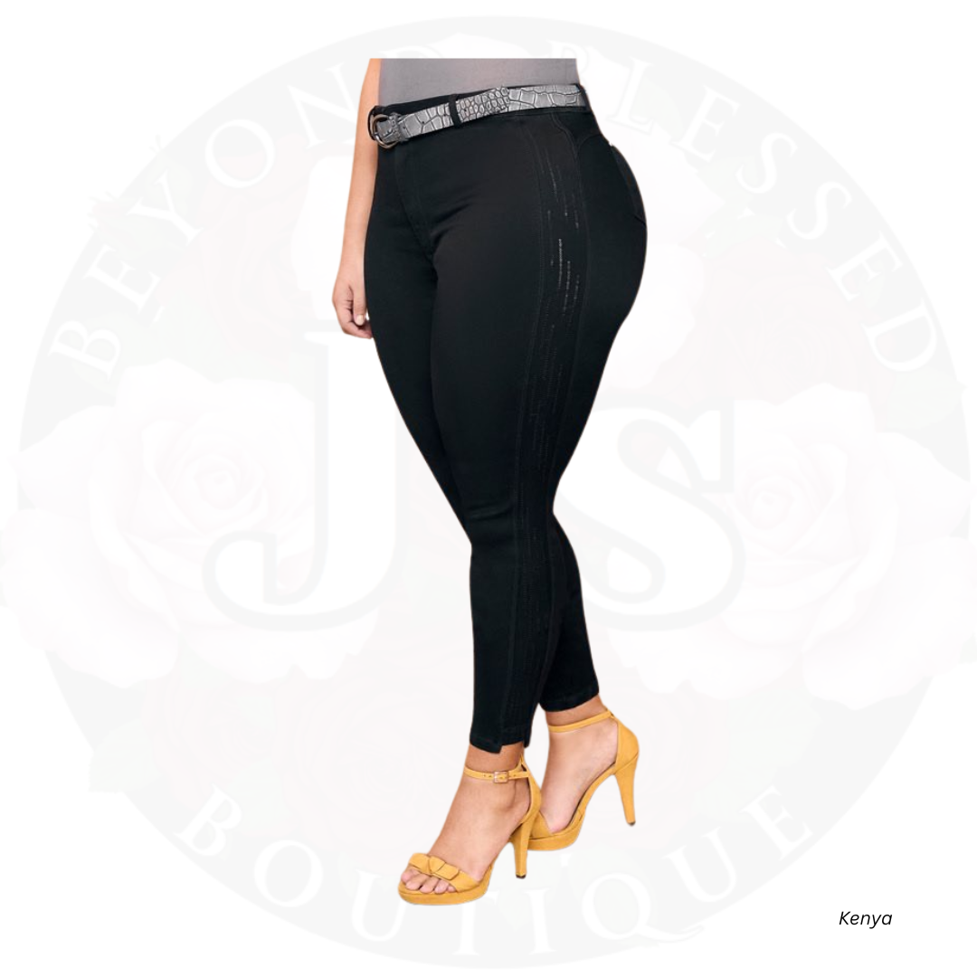 Butt-lifting jeans made from soft-touch peach skin fabric. Anatomical, single-button waistband. Shapes the leg and hip. Back pockets. Includes a belt. Embroidered details on the side.
