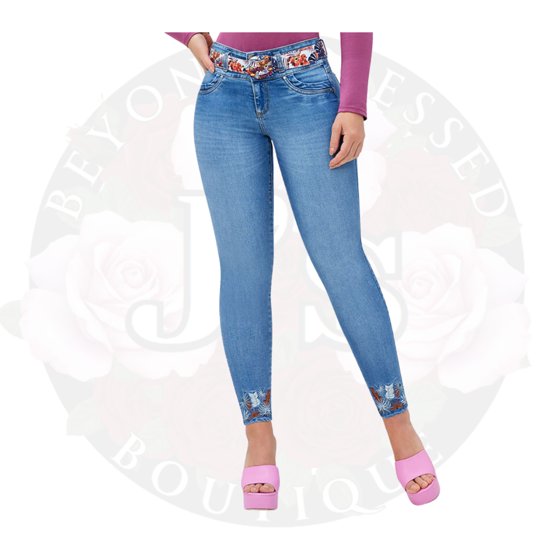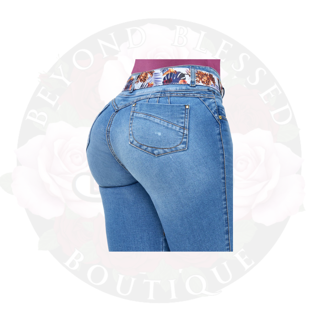 Achieve a flattering figure with the Jean Liley, featuring a butt-lifting design and ankle length cut. The embroidered detailing at the ankle adds a touch of elegance to this comfortable and stylish pair. Elevate your wardrobe with this scientifically crafted denim.