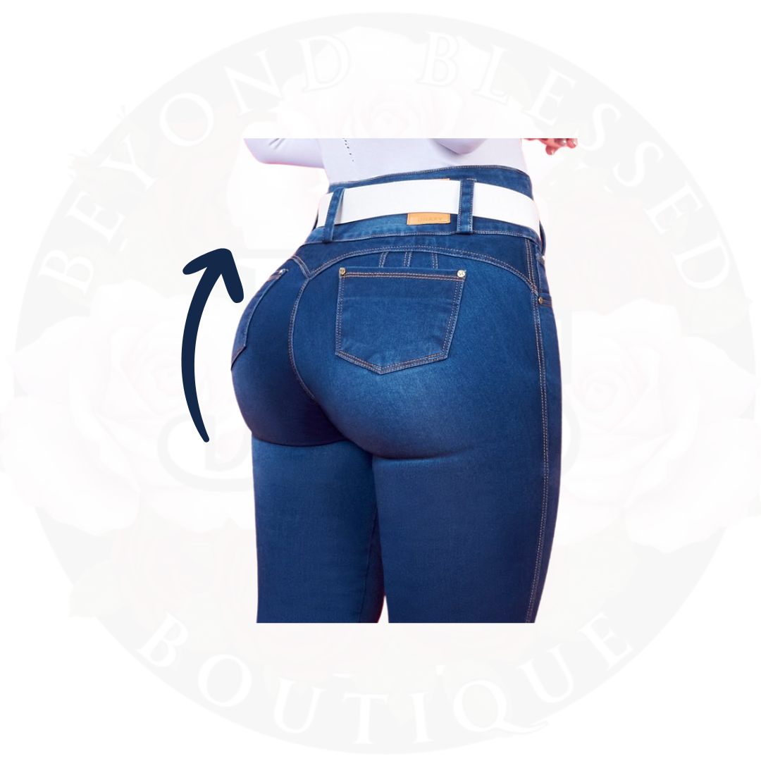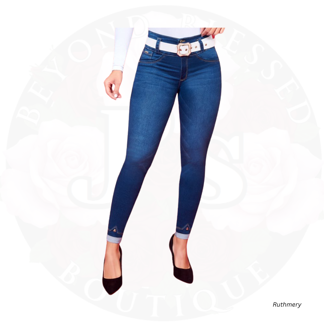Introducing Jean Ruthmery, the ultimate butt-lifting jeans made from soft-touch peach skin fabric. With a three-button high waistband and anatomical waistband, these jeans provide support and shaping for the perfect fit. Complete with back pockets and a belt for added style.