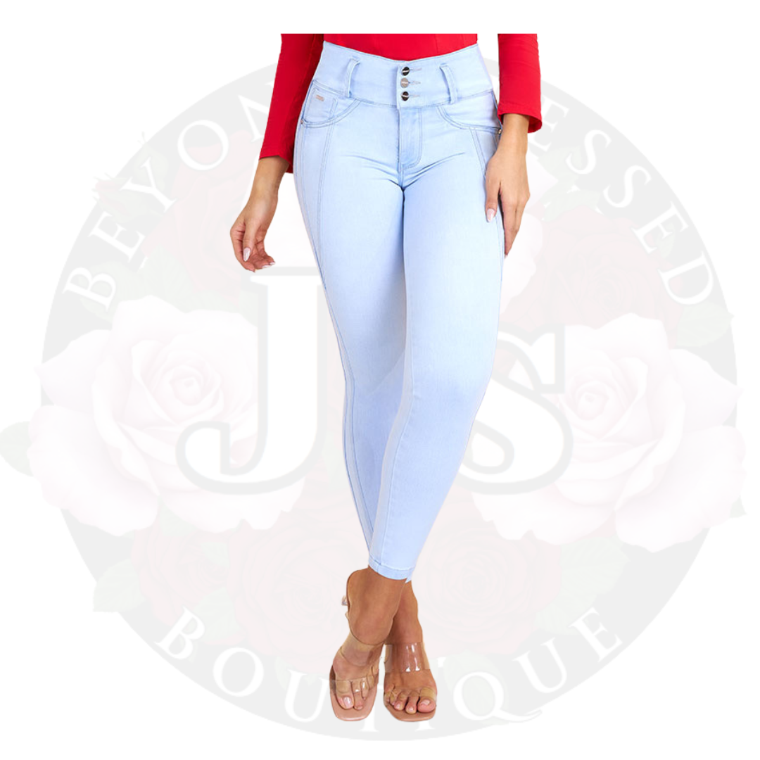 Upgrade your workout wardrobe with our Jean Turi. These high-waisted jeans feature a butt-lifting design and a 3-button closure for a flattering fit. The front compression technology offers both support and a slimming effect. Elevate your performance and style with Jean Turi.