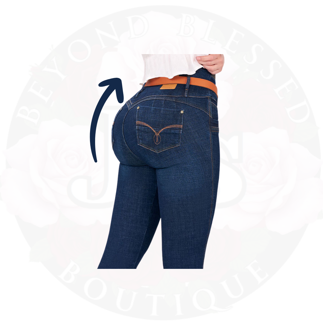 Introducing Jean Valentina, the ultimate butt-lifting jean made from peach skin for a soft, luxurious feel. Its anatomical waistband shapes and enhances your legs and hips for a figure-flattering fit. Plus, it comes with a belt for added style. Elevate your wardrobe with Jean Valentina.