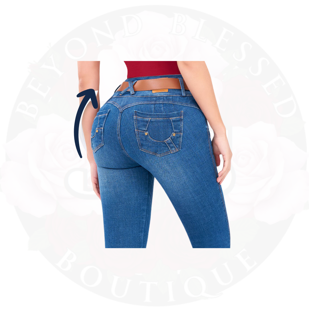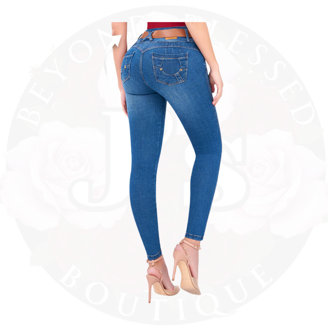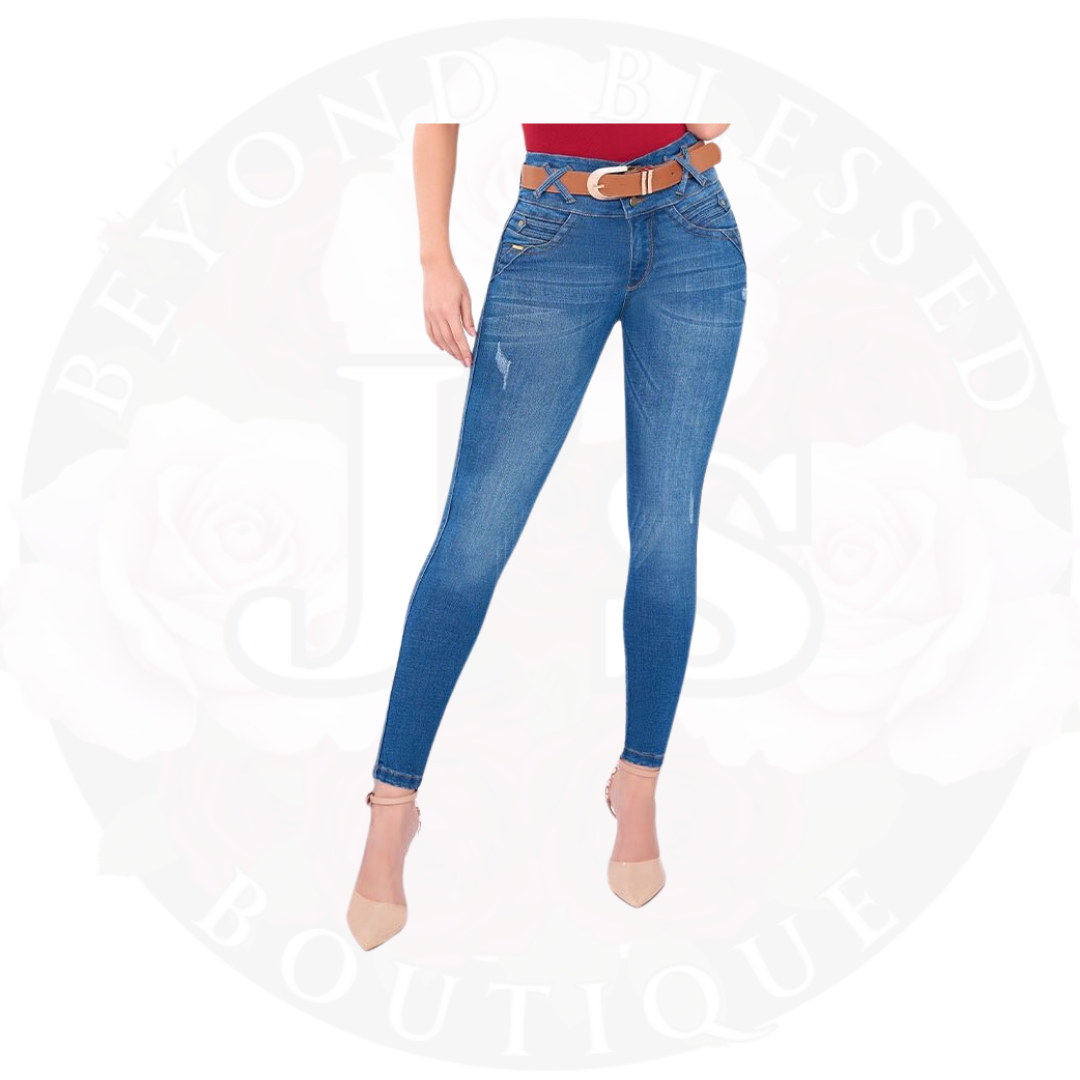 Introducing Jean Wanda, the expertly crafted butt-lifting jeans made with peach skin fabric for a luxurious feel. The uniquely designed anatomical waistband shapes the legs and hips while enhancing your figure. Complete with a belt for added versatility. Elevate your style with Jean Wanda.