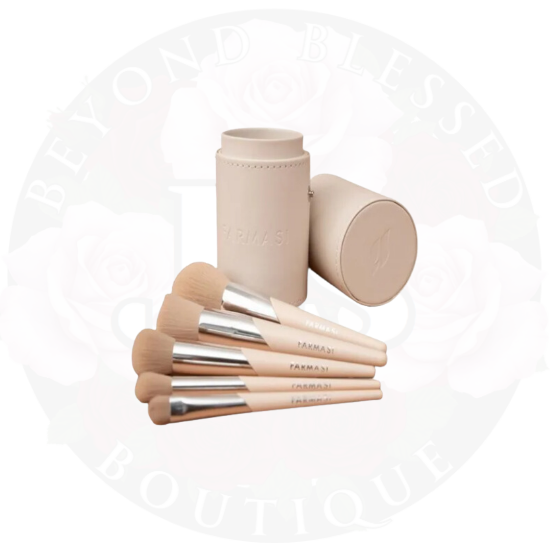 Blush and powder brush, foundation brush, Concealer brush, shader brush, blending brush.